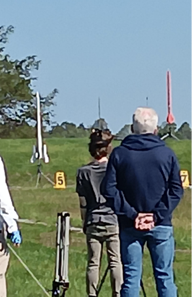 One of the West Virginia students also tested a high-density composite fuel as a static test. I thought this was very innovative -- using a 3D printed special nozzle a small rocket was constructed using this fuel, which resembles a small Estes model rocket in size and diameter, but which is mostly fuel. It could easily pass through an RSO at a standard NAR model rocket launch or even a contest. But its resemblance is deceptive. This rather tiny rocket can go up 17,000 feet altitude! Higher than the height attainable by a standard high power rocket on an M engine at our launch! (Note: one of those was attempted but scrubbed due to ignition problems).