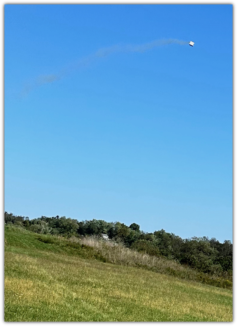 The Hot Sauce bounces upright after nosing into the ground. John Haught had to walk roughly 9 steps to recover. No drone flight was required to locate the Sauce.