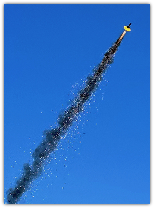 Next up was John Haught's Hot Sauce on a dark and sparky 54mm, 2 grain J-241. John calls this propellant formula ShitFire.