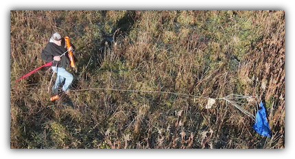 Both were successfully recovered near the pond. While the nose was in a tree, the large size and long lines meant that it could be pulled down without issue.